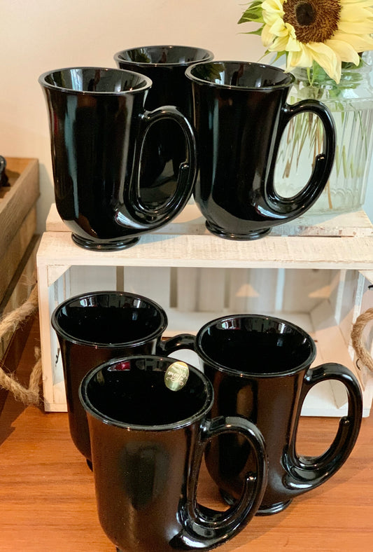 Tiara Exclusive Horn Mug set of 6 IN BOX black Indiana Glass Co. Hunters Horn Mugs IOB "Aunt Dottie's"