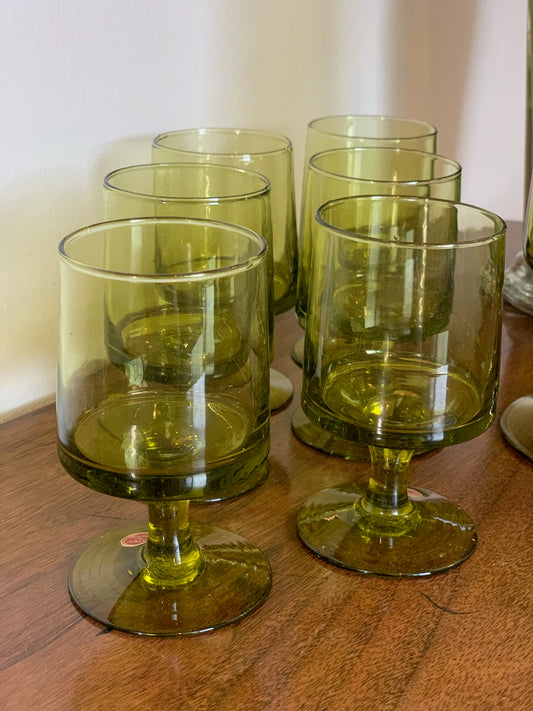 Vintage MCM Blown glass olive green cocktail goblets made in Italy (OTTV 1779) priced individually 4 available, pitcher sold out