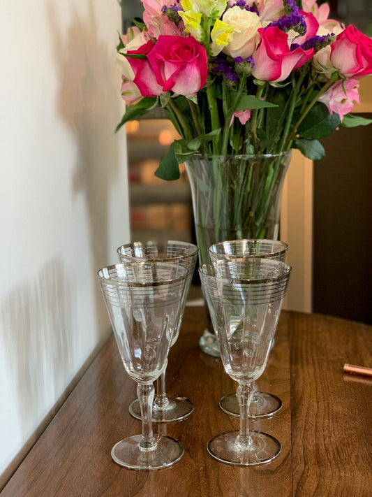 Platinum Rim MCM 5 band wine Crystal Goblets (1512 1513 1514) priced individually