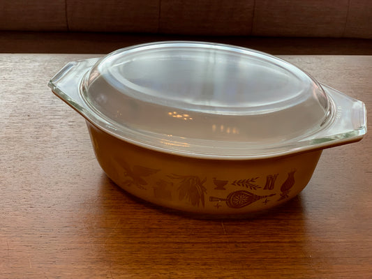 Pyrex Early American 043 Covered Oval baking Dish with 9143C lid from 1960's (2153)